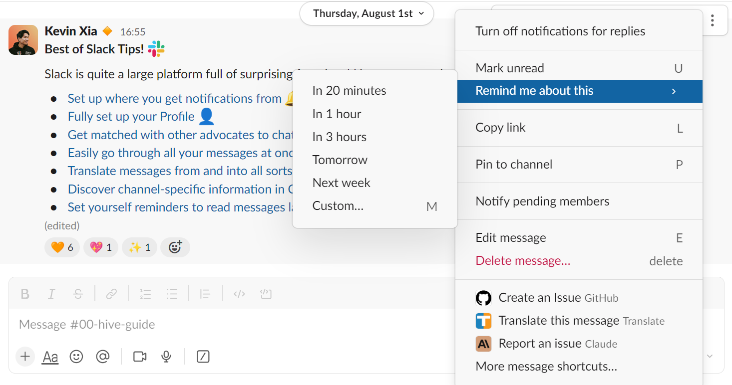 Did you know? ❓ You can set yourself reminders for posts if you don’t have time to read them right away: Use the "Remind me about this" menu option! It offers convenient defaults and a custom option.