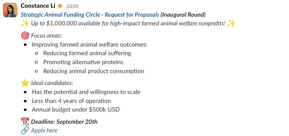 🧡 If you get value from our our newsletter or Slack, please consider supporting us. Your donation will allow us keep improving and providing these free services to animal advocates like you🙏