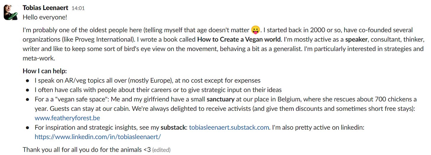 I'm Tobias Leenaert and I have co-founded several organizations (like Proveg International), wrote a book called How to Create a Vegan World, and am now most active as a speaker, consultant, thinker, and writer.