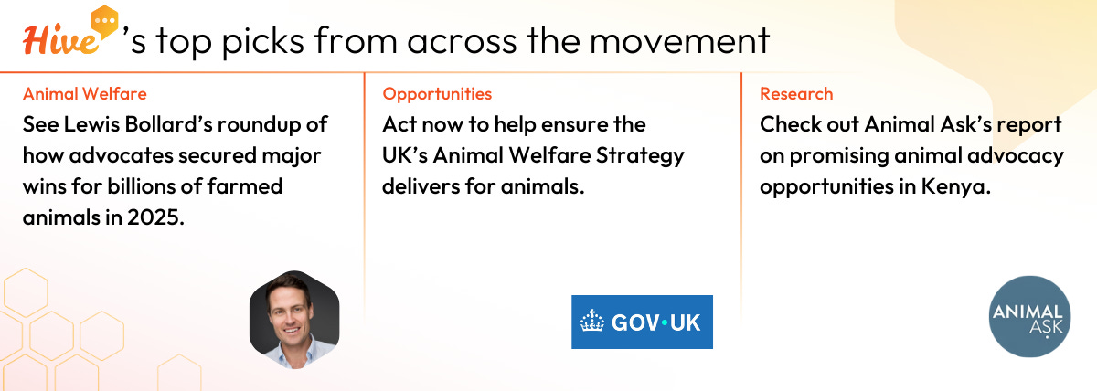 Thanks for reading our Hive Highlights: late December 2025 edition 🧡 It’s made possible by the incredible work of animal advocates like you.