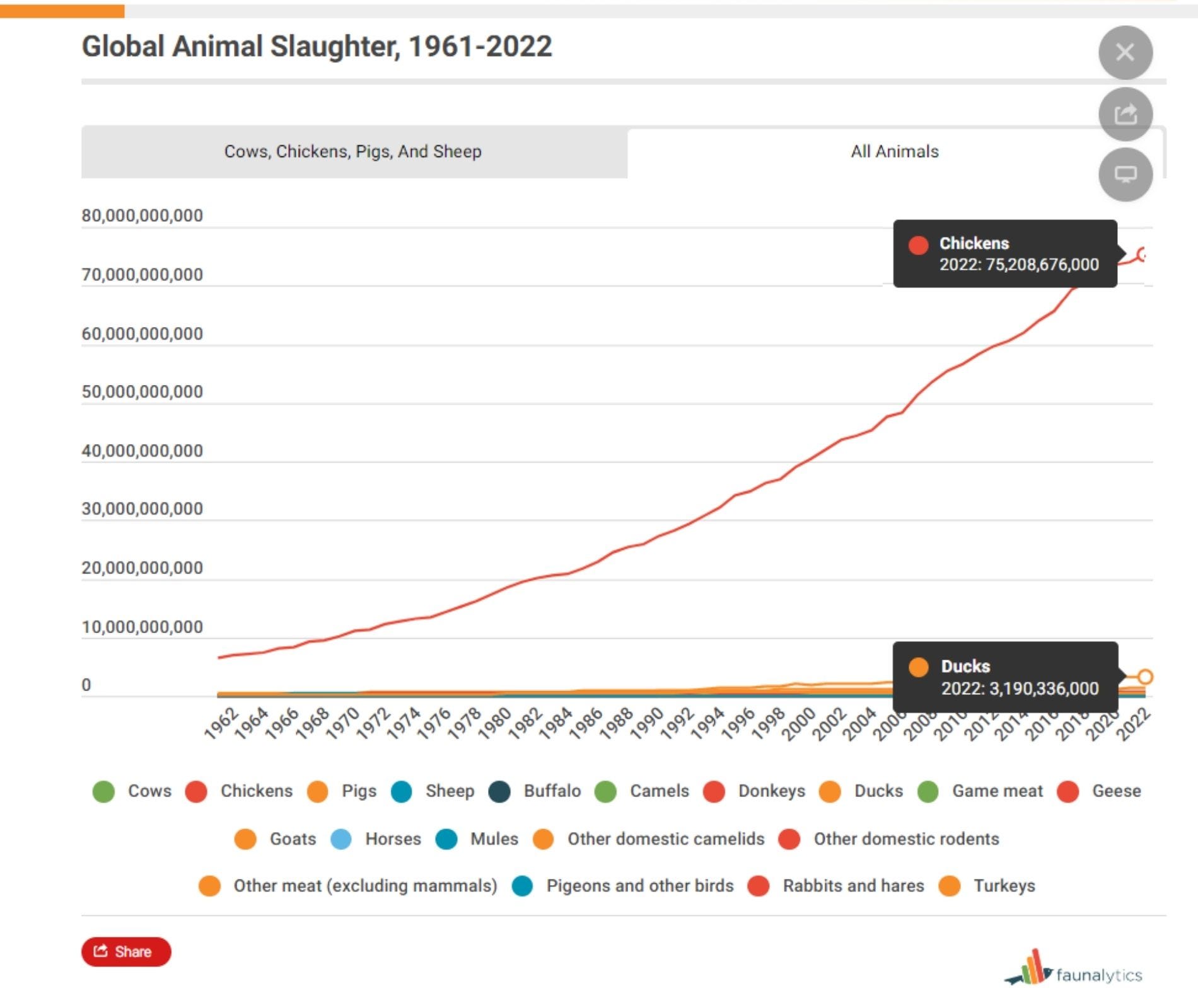 Faunalytics released an updated Global Animal Slaughter Statistics & Charts using United Nations Food and Agriculture Organization (UN FAO) data.