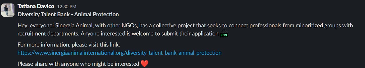 Diversity Talent Bank, a joint project by several Latin American animal protection NGOs, connects professionals from minoritised groups with their recruitment teams.