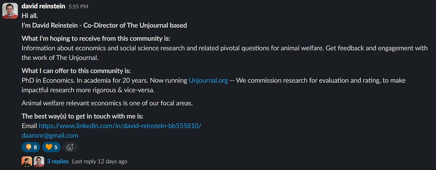 Hi, I’m David Reinstein, Co-Director of The Unjournal, working to support rigorous research in areas including economics relevant to animal welfare.