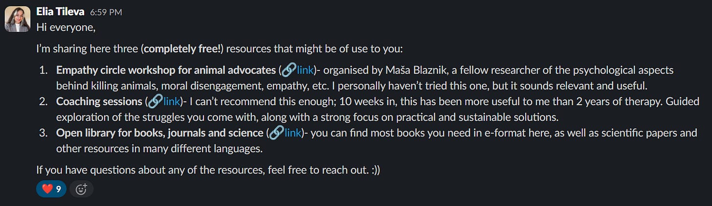 Elia shared free resources for advocates, including a workshop, coaching sessions and an open access library.