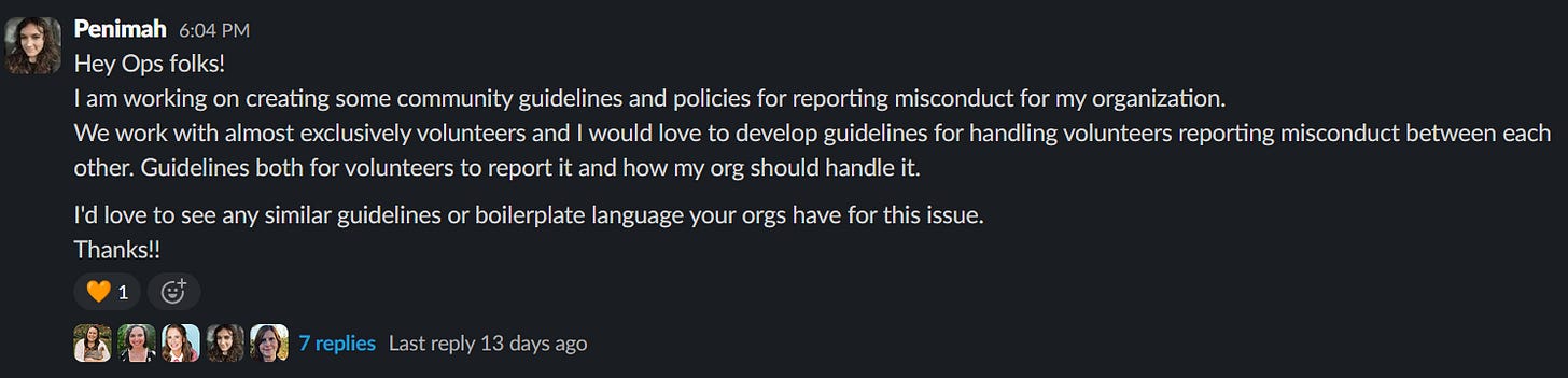 Penimah received some recommendations for community guidelines and policies for reporting misconduct at organisations.