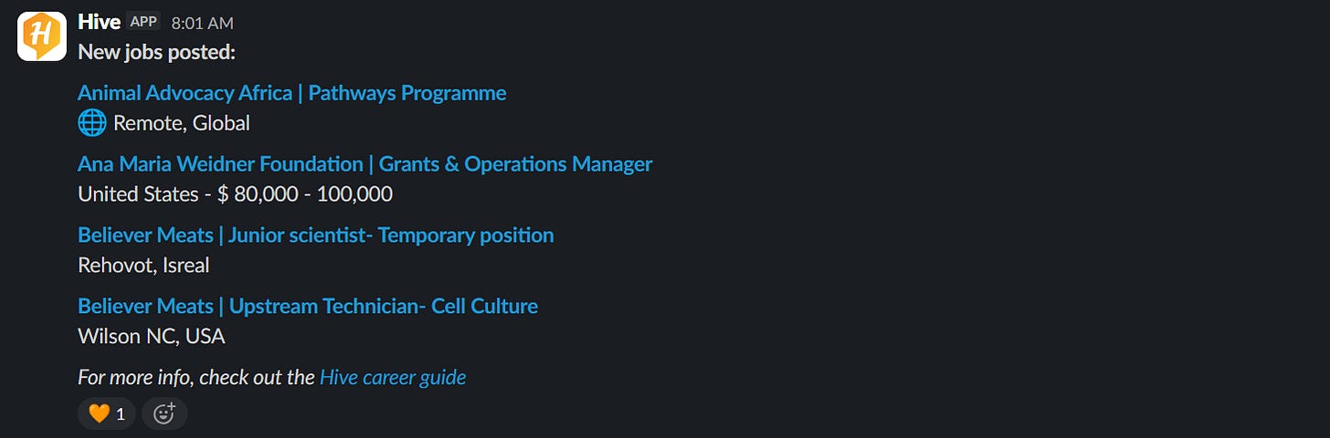 One of our most popular channels is #06-job-postings! We have a feed that scans various job boards and posts a daily list of available positions.